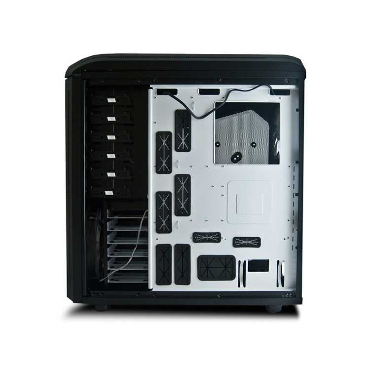 · Dos potenciómetros independientes para controlar los ventiladores (hasta 6 ventiladores) · Filtros anti-polvo extraíbles para PSU y ventilador de la parte inferior · Compatible con tarjetas gráficas de gran formato (Hasta 330 mm) · Diseño interior exclusivo en blanco y negro · Instalación de unidades 5.25 y slots PCI sin tornillos · Cubierta superior extraíble para una fácil instalación de 2 ventiladores de 120 o 140 mm · Metal Mesh en el panel frontal para un mejor flujo de aire · Sistema para ordenar los cables en el interior · Preparada para refrigeración líquida (incluye tres orificios en la parte trasera). · Puertos I/O en la parte superior para un fácil acceso · Instalación de la fuente de alimentación en la parte inferior de la caja