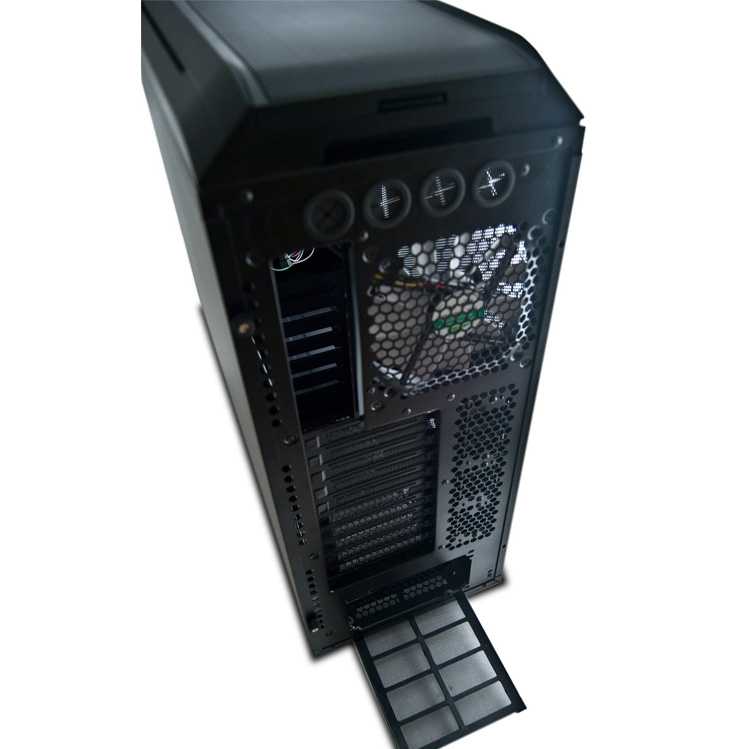 Caja torre compatible con múltiples formatos de placa base. Incluye un excelente sistema de refrigeración con capacidad para albergar hasta 9 ventiladores.