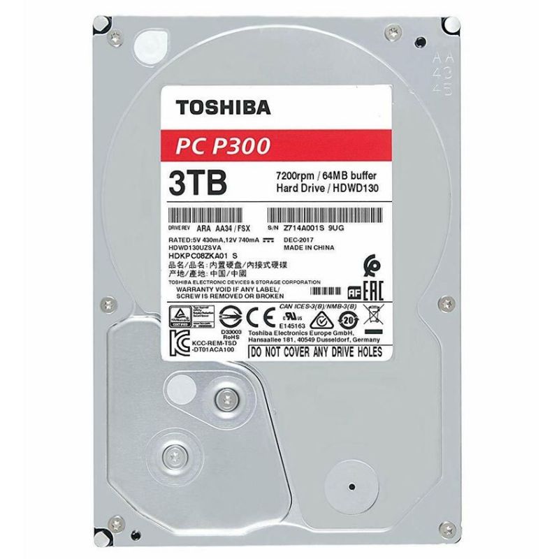 Descripción Toshiba P300 3TB. Tamaño del HDD: 3.5", Capacidad del HDD: 3000 GB, Velocidad de rotación del HDD: 7200 RPM