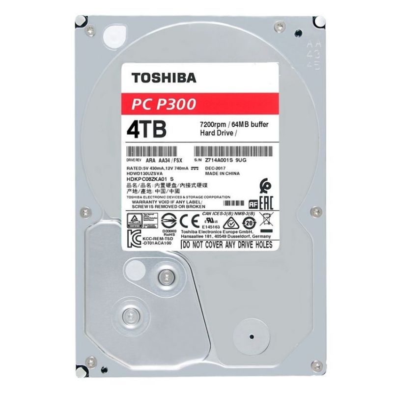 Descripción Toshiba P300. Tamaño del HDD: 3.5", Capacidad del HDD: 4000 GB, Velocidad de rotación del HDD: 5400 RPM