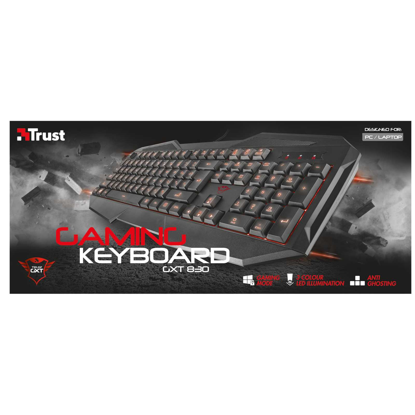 Type wired USB version 2.0 KEYS Technology membrane Response time 50ms Number of keys 104 MACRO KEYS Anti-Ghosting up to 6 keys GENERAL Gaming Mode yes Programmable keys no Programmable macro's no On-board memory no Cable type nylon braided cable length 140cm Backlight illumination yes (red/blue/purple) Key illumination yes (red/blue/purple) INFORMACIÓN EXTRA