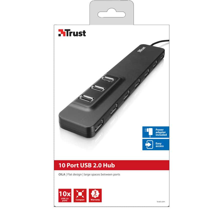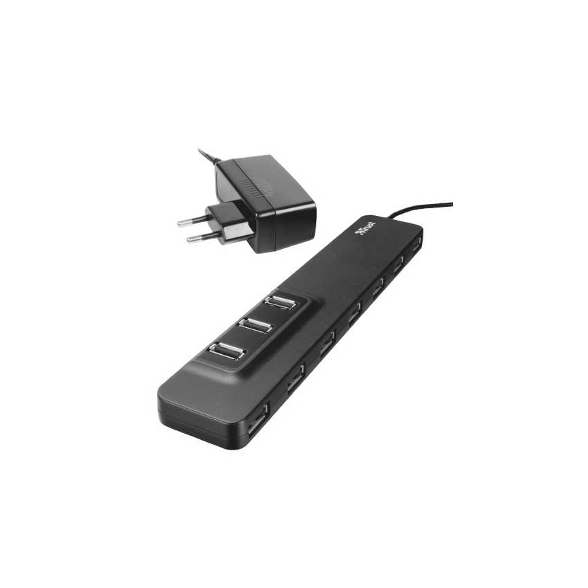 Descripción Diseño plano y compacto, perfecto para el escritorioConecte hasta 10 dispositivos USB a un PC u ordenador portátil situado a corta distanciaTres puertos de acceso fácil en la parte superior y siete puertos en la parte frontalPuertos con amplia separación entre ellos para acomodar todo tipo de dispositivos USBIncluye adaptador de toma eléctrica para una conexión estable, incluso cuando todos los puertos están en uso Especificaciones Cantidad de puertos: 10 Interfaces de concentradores: USB 2.0 Cantidad de puertos USB 2.0: 10 Alimentación: Corriente alterna Color del producto: Negro Sistema operativo Windows soportado: Si Sistema operativo MAC soportado: Si Adaptador AC incluido: Si Manual de usuario: Si