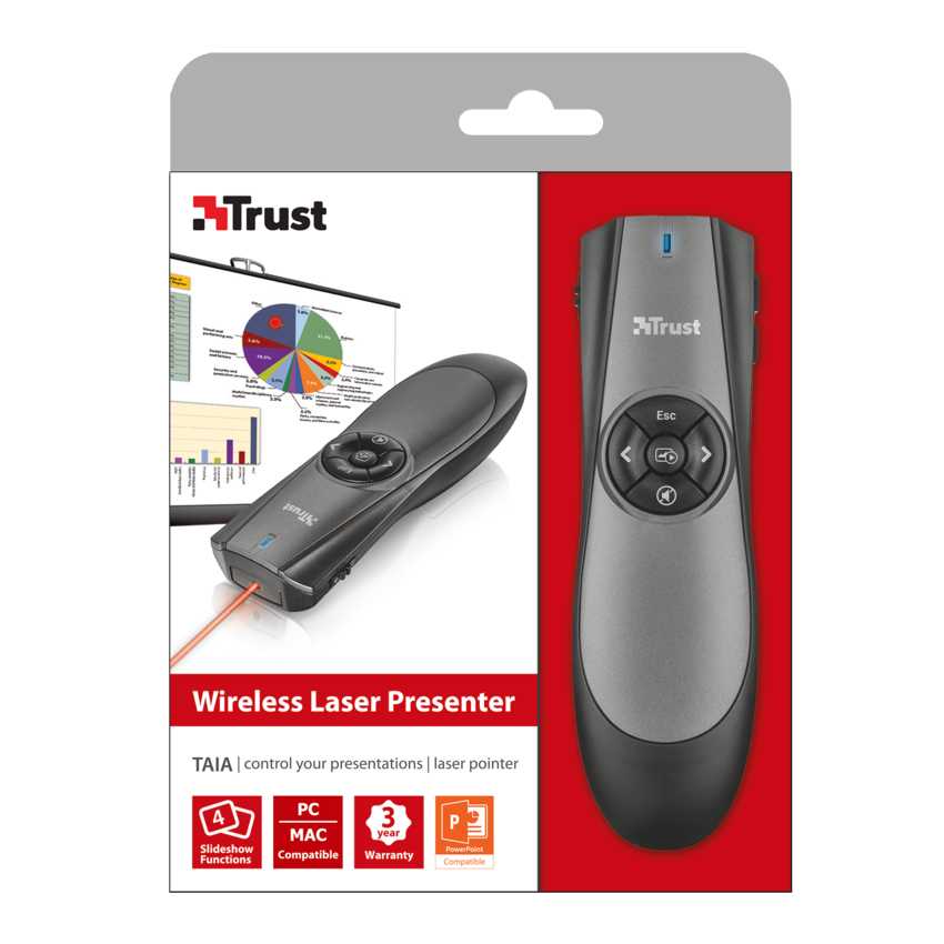 Descripción Trust 20405. Tecnología inalámbrica: RF, Alcance inalámbrico: 15 m. Tipo de batería: AAA. Interfaz de receptor inalámbrico: USB. Color del producto: Negro, Gris