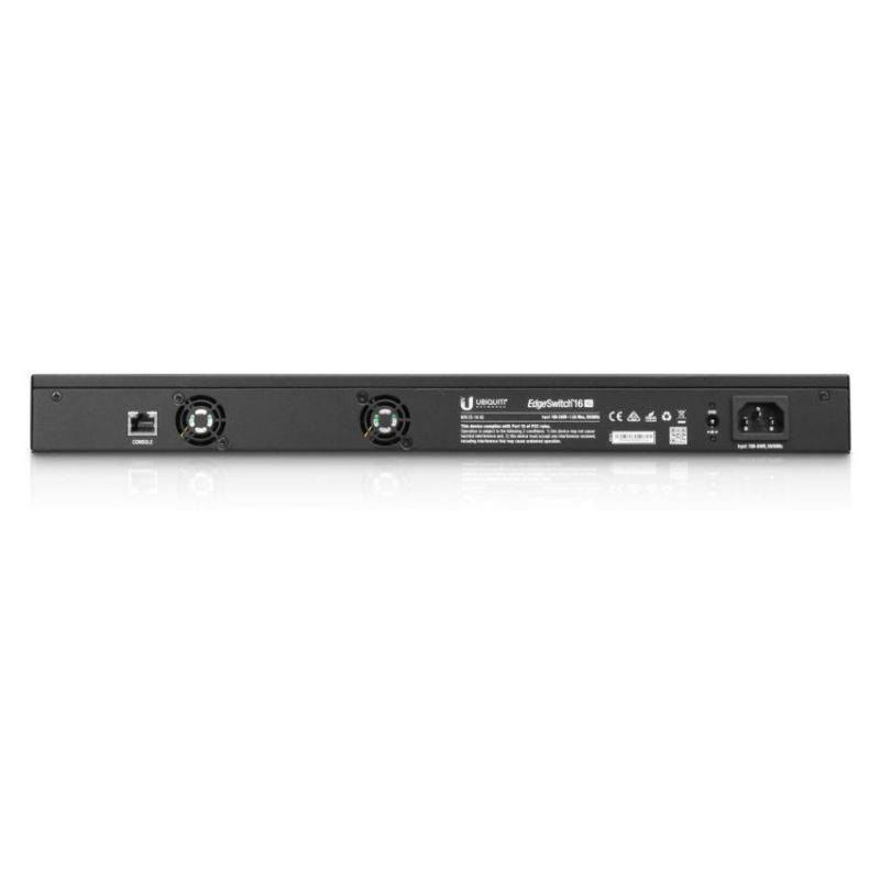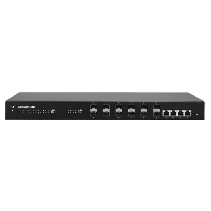 Descripción Ubiquiti Networks ES-16-XG. Tipo de interruptor: Gestionado. Puertos tipo básico de conmutación RJ-45 Ethernet: 10G Ethernet (100/1000/10000), Cantidad de puertos básicos de conmutación RJ-45 Ethernet: 4, Puerto de consola: RJ-45. Tabla de direcciones MAC: 8000 entradas, Capacidad de conmutación: 320 Gbit/s. Estándares de red: IEEE 802.1D,IEEE 802.1Q,IEEE 802.1ab,IEEE 802.1p,IEEE 802.1s,IEEE 802.1w,IEEE 802.1x,IEEE.... Conector eléctrico: Toma de entrada de CC. Montaje en rack, Factor de forma: 1U