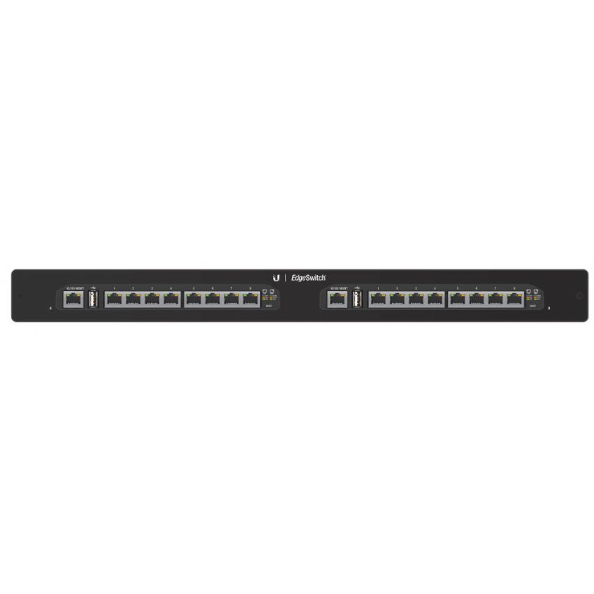 Descripción Ubiquiti Networks EdgeSwitch 16XP. Tipo de interruptor: Gestionado. Puertos tipo básico de conmutación RJ-45 Ethernet: Gigabit Ethernet (10/100/1000), Cantidad de puertos básicos de conmutación RJ-45 Ethernet: 16, Cantidad de puertos USB 2.0: 2, Puerto de consola: RJ-45. Energía sobre Ethernet (PoE). Montaje en rack, Factor de forma: 1U