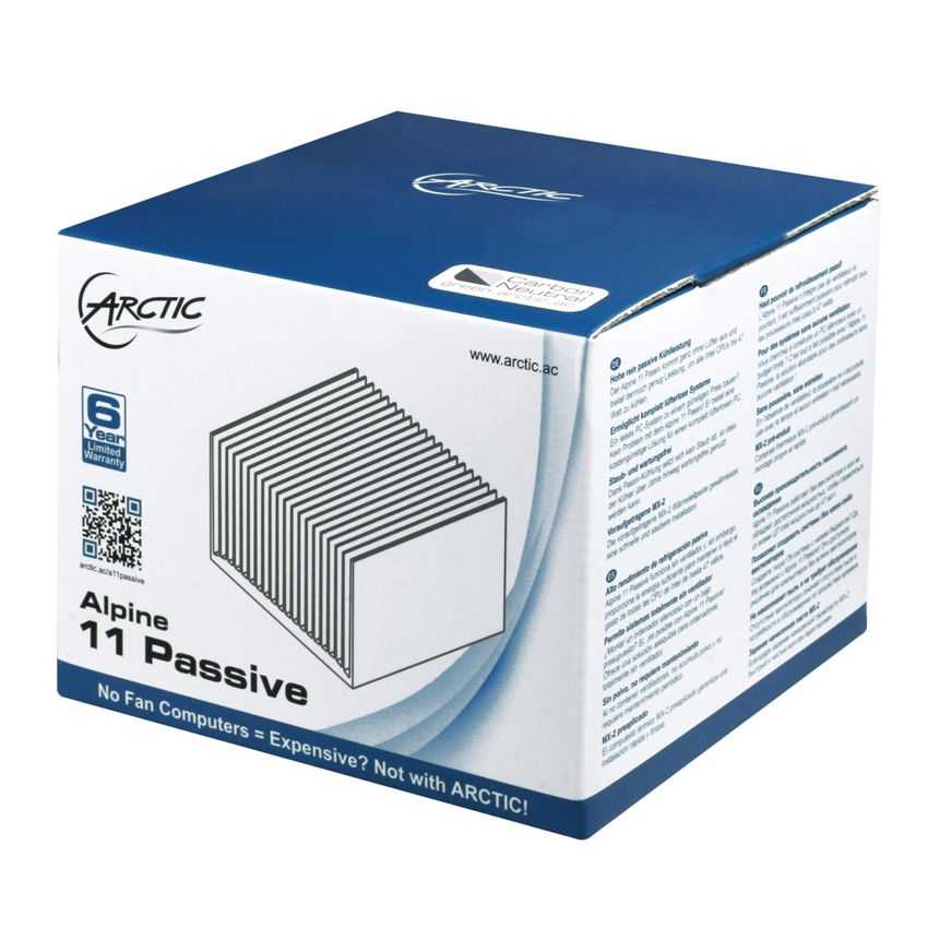 Descripción ARCTIC Alpine 11. Tipo: Radiador, Adecuado para: Procesador, Sockets de procesador soportados: Socket H (LGA 1156), Socket H2 (LGA 1155), Socket H3 (LGA 1150), Socket LGA 1151. Color del producto: Aluminio, Materiales: Aluminio. Ancho: 9,5 cm, Altura: 6,9 cm, Peso del disipador de calor: 527 g