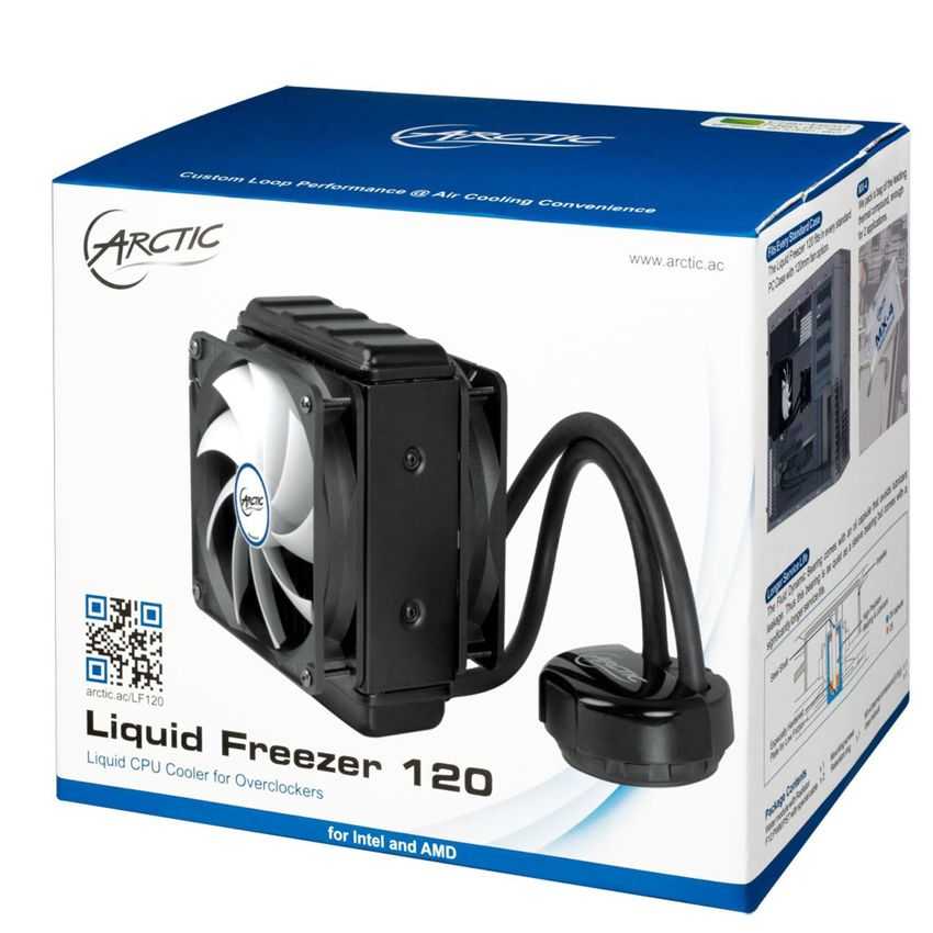 Descripción ARCTIC Liquid Freezer 120. Peso: 717 g, Diámetro de ventilador: 12 cm, Grosor de ventilador: 2,5 cm. Material de radiador: Aluminio, Color del producto: Negro, Color blanco. Voltaje de bomba: 12 V, Voltaje del ventilador: 12 V, Corriente del ventilador: 0,25 A