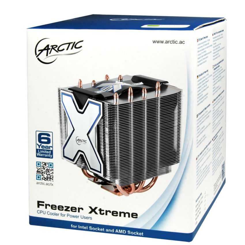 Descripción ARCTIC Freezer XTREME Rev.2. Compatibilidad: Intel Socket 1366, 1156, Core i7, 775 AMD Socket AM3, AM2+, AM2, 939. Color del producto: Negro, Plata, Materiales: Aluminio y cobre. Peso: 608 g. Dimensiones (Ancho x Profundidad x Altura): 100 x 130 x 131 mm, Conector: 4-pin, Capacidad máxima de refrigeración: 160W