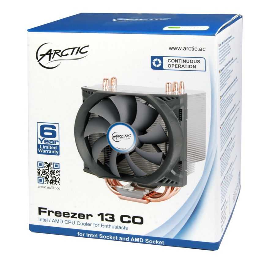Descripción ARCTIC Freezer 13 CO. Tipo: Enfriador, Adecuado para: Procesador, Diámetro de ventilador: 9,2 cm. Peso: 706g, Peso del paquete: 1,2 kg. Desempeño de ventilador: 36,4 cfm, Dimensiones del embalaje (alto x alto x peso): 103 x 126 x 140 mm, Dimensiones (Ancho x Profundidad x Altura): 96 x 123 x 130 mm