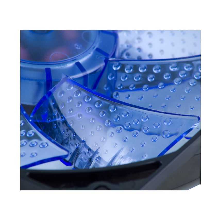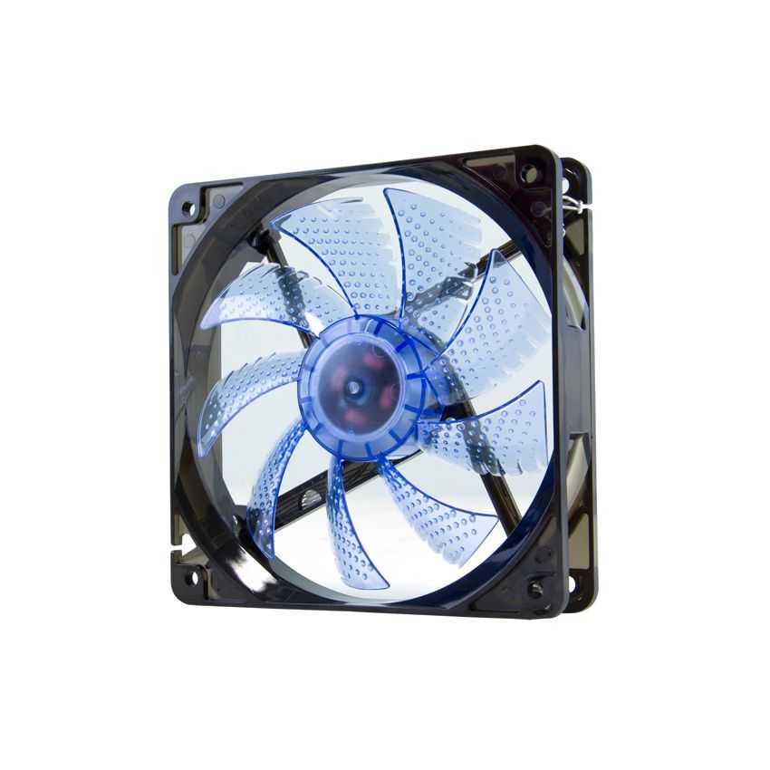 - 9 aspas traslúcidas en color azul - Rodamientos de larga duración - 4 LEDs brillantes - Diseño silencioso optimizado - Marco transparente negro - Gran flujo de aire para una mejor eficiencia de enfriamiento - Conector 3 y 4 pines