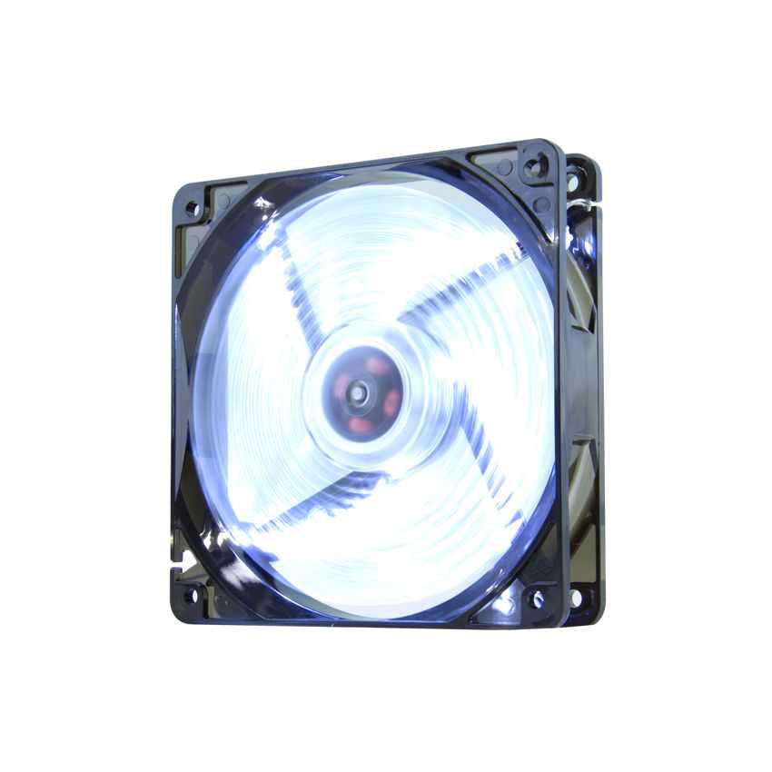 Especificaciones Tipo: Enfriador Adecuado para: Carcasa del ordenador Diámetro de ventilador: 12 cm Sockets de procesador soportados: No Procesador compatible: No Máxima velocidad de centrifugado: 1200 RPM Nivel de ruido (alta velocidad): 19 Db Color del producto: Negro, Color blanco Iluminación: LED Iluminación de color: Color blanco Ancho: 12 cm Profundidad: 2,5 cm Altura: 12 cm