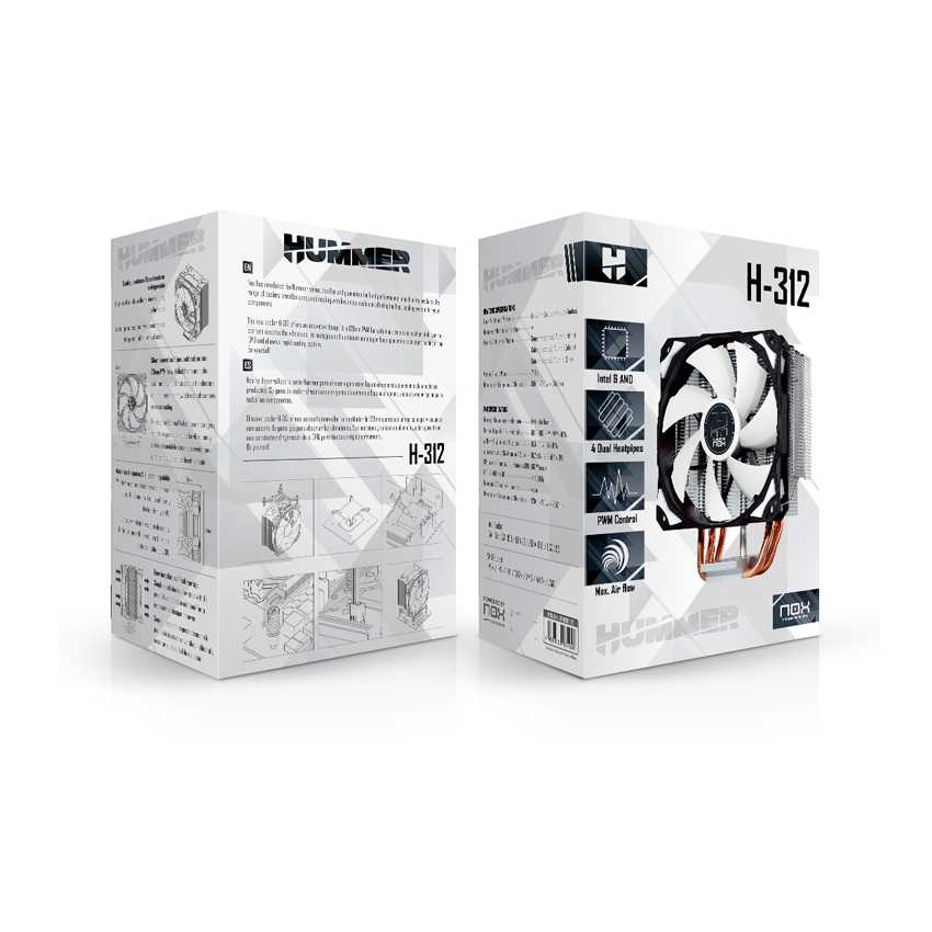 Descripción El H-312 es el último modelo de 12 cm de la gama de disipadores de CPU de la serie Hummer, una completa solución de gran calidad que combina un rendimiento excepcional, un funcionamiento silencioso y una compatibilidad excelente.