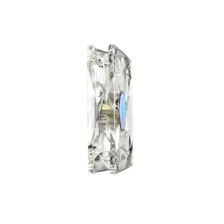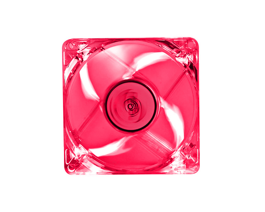 Ventilador de caja de 120 mm con marco transparente y LED rojo. Baja velocidad de rotación para un mínimo nivel sonoro.