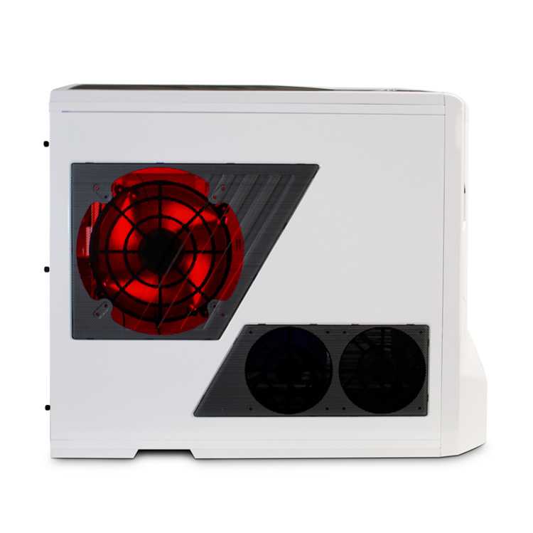 Ventilador de caja de 200 mm con aspas blancas y LED rojo. Excelente rendimiento a un bajo nivel sonoro con tan sólo 20 decibelios.