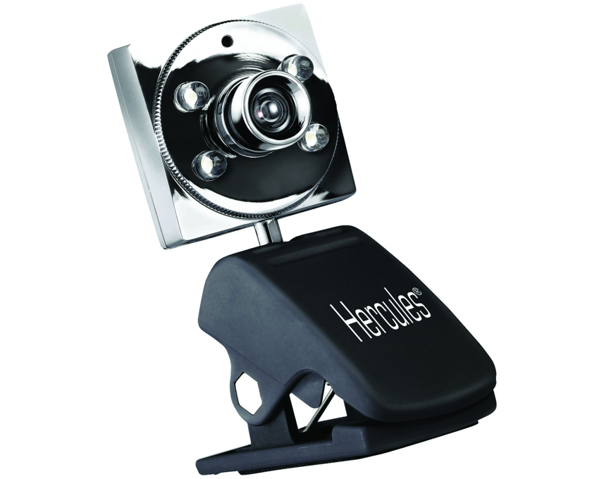 Hercules Webcam Optical Glass Sensor VGA con lente de cristal: para lograr el mejor rendimiento óptico, ¡e imágenes aún más claras! 4 diodos de iluminación para imágenes claras y brillantes, incluso con poca luz Resolución de vídeos: 800 x 600 Resolución de fotos: 1,3 megapíxeles (interpolación por software) Imágenes increíblemente fluidas: hasta 30 fotogramas por segundo Webcam diseñada y optimizada para las aplicaciones de mensajería instantánea más populares: (MSN® Messenger / Windows LiveTM Messenger, Skype®, Yahoo!® Messenger, AIM®, GoogleTM GmailTM Chat de vídeo y voz, QQTM...). Micrófono integrado y auriculares con micrófono adicionales incluidos Anillo de enfoque manual Zoom digital 3x con función de seguimiento automático de caras Suite de software exclusiva que te permite "aderezar" tus chats con vídeo: Hercules Webcam Station Evolution SE, Hercules Xtra Controller EX