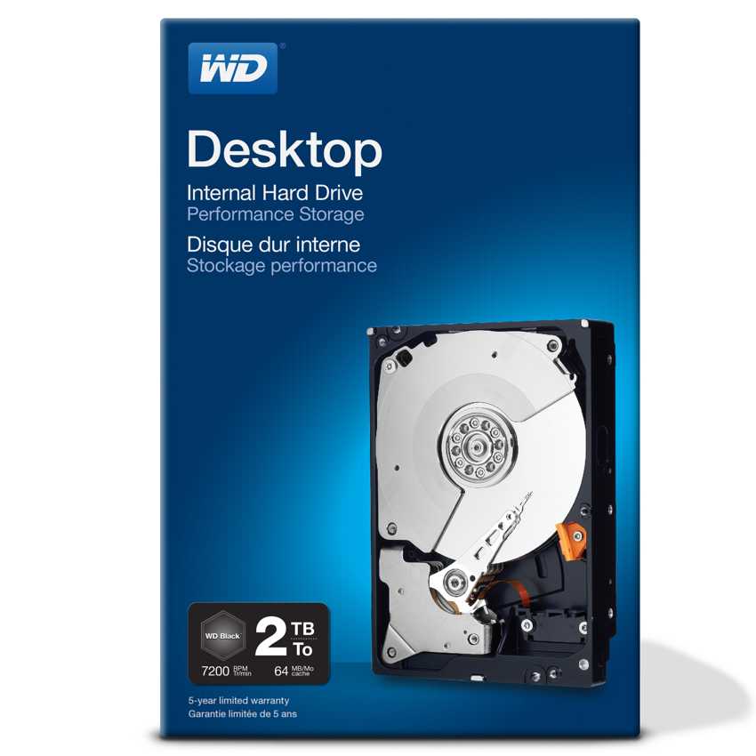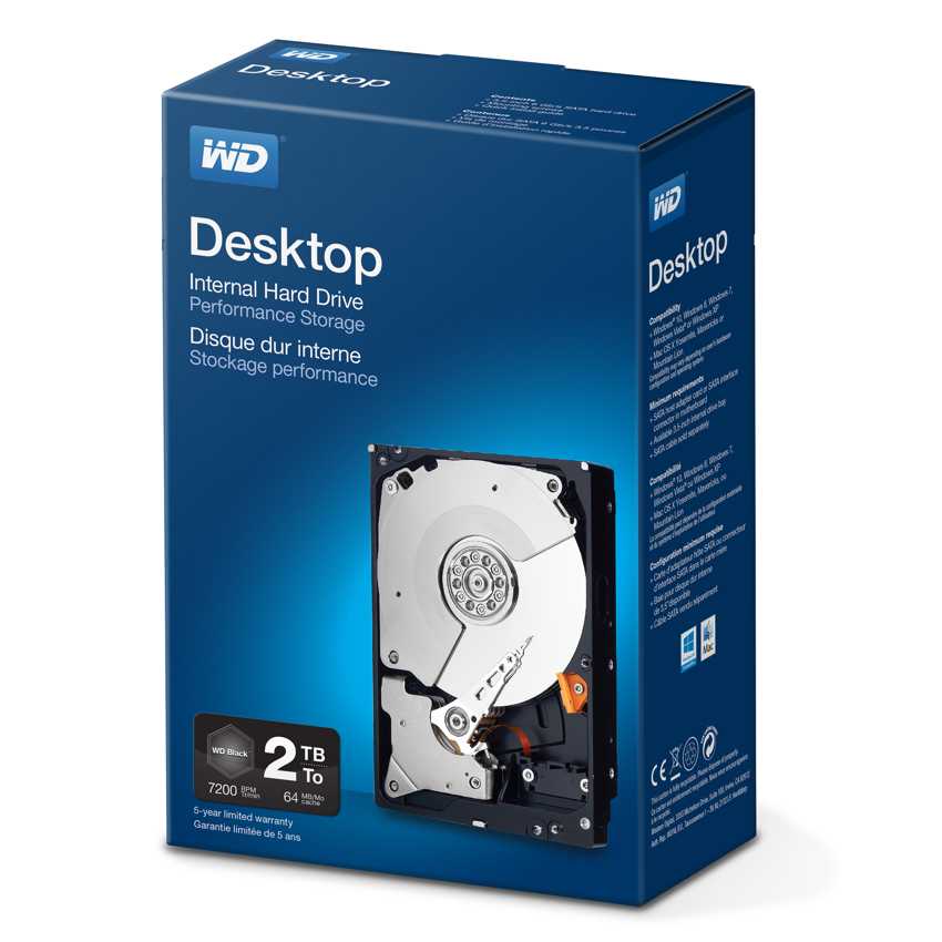Descripción Western Digital 2TB Desktop Performance. Capacidad de disco duro: 2000 GB, Interfaz del disco duro: Serial ATA III, Velocidad de rotación de disco duro: 7200 RPM. Ancho: 10,2 cm, Altura: 2,61 cm, Profundidad: 14,7 cm. Color del producto: Negro, Tecnología de conectividad: Alámbrico