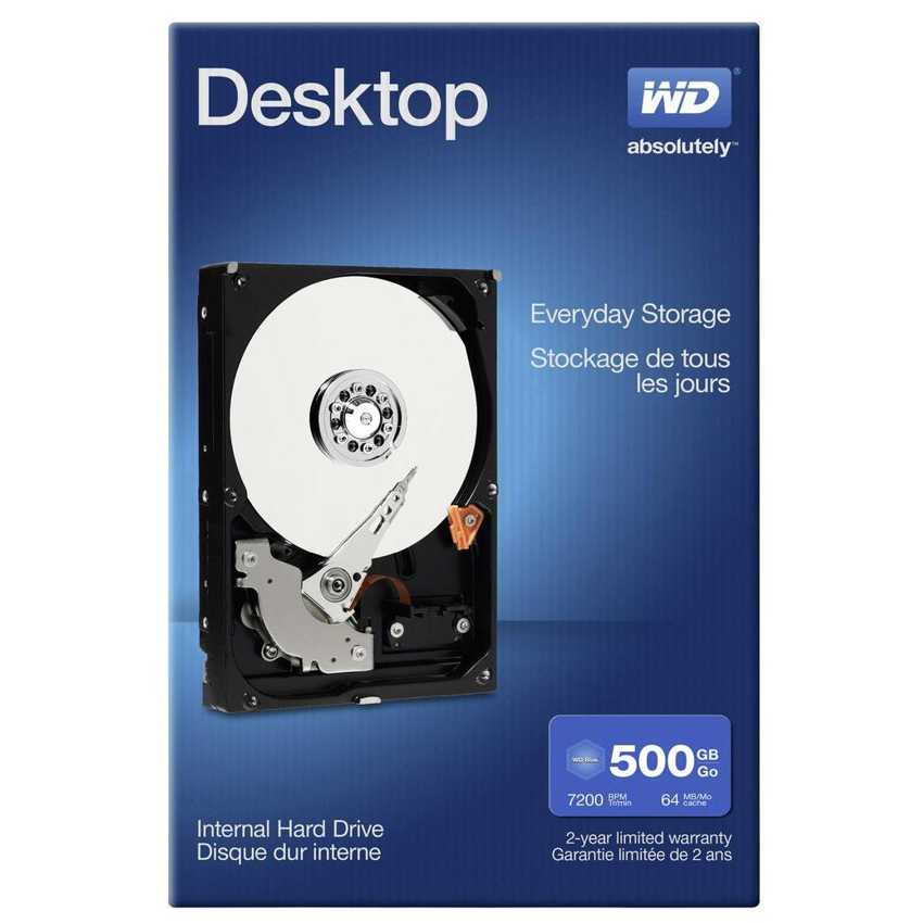 Descripción Western Digital 500GB Desktop Mainstream. Capacidad de disco duro: 500 GB, Interfaz del disco duro: Serial ATA III, Velocidad de rotación de disco duro: 7200 RPM. Ancho: 10,2 cm, Altura: 2,61 cm, Profundidad: 14,7 cm. Color del producto: Negro, Velocidad de transferencia de datos: 6 Gbit/s, Tecnología de conectividad: Alámbrico