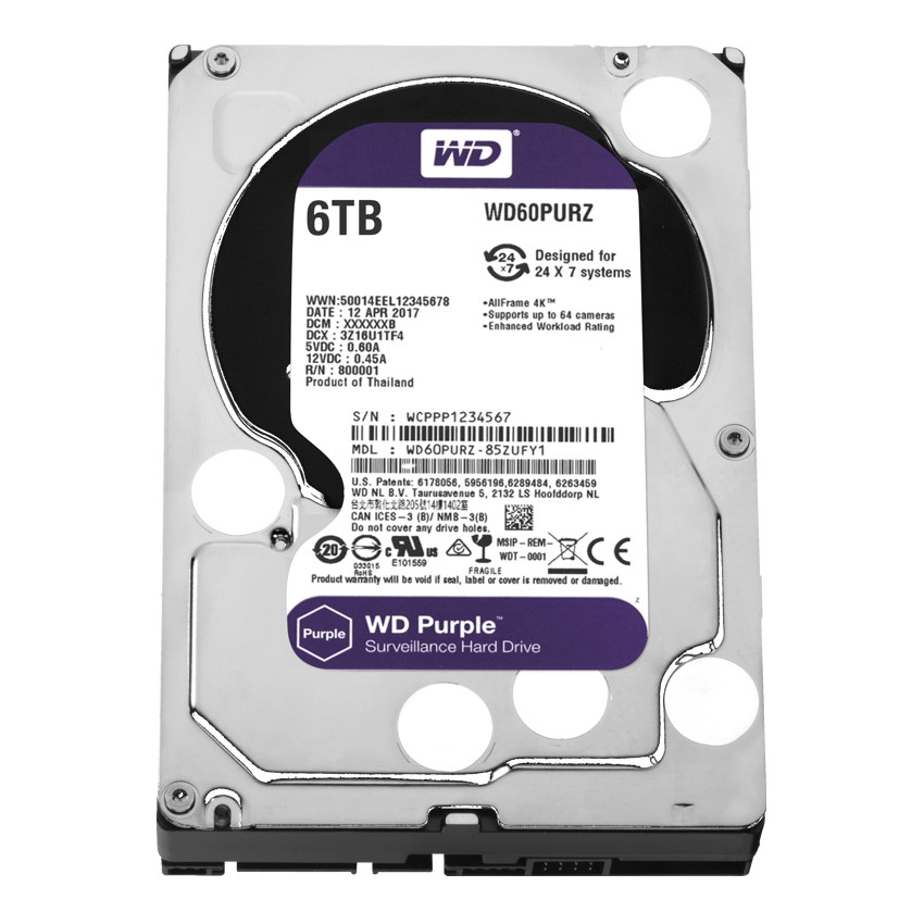 Descripción MÁS CÁMARAS. MÁS CLARIDAD. MÁS VIDEOVIGILANCIA. Creados para sistemas de seguridad de alta definición que operan de forma ininterrumpida, 24 horas, todos los días. Los discos WD Purple cuentan con una carga de trabajo de hasta 180 TB/año , admiten hasta 64 cámaras y están optimizados para sistemas de videovigilancia.