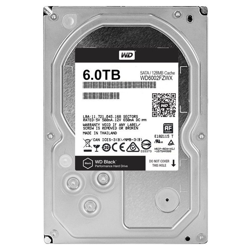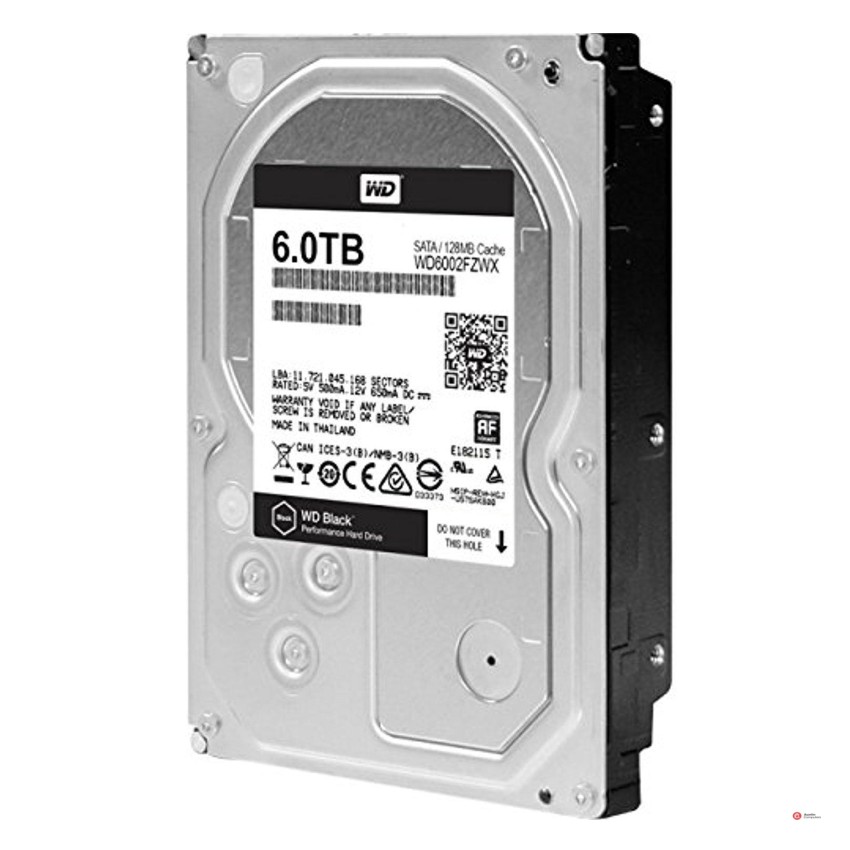Descripción Western Digital Black. Capacidad de disco duro: 6000 GB, Interfaz del disco duro: Serial ATA III, Velocidad de rotación de disco duro: 7200 RPM. Consumo de energía (inactivo): 1 W, Consumo de energía (lectura): 9,1 W, Consumo de energía (escritura): 9,1 W. Ancho: 101,6 mm, Altura: 26,1 mm, Profundidad: 147 mm