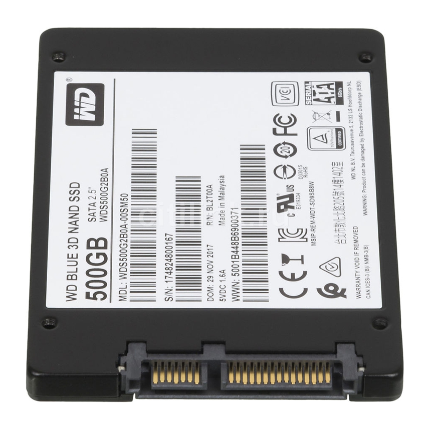 Descripción Western Digital WDS500G2B0A. Disco de estado sólido, capacidad: 500 GB, Interfaces de disco de estado sólido: Serial ATA III, Velocidad de lectura: 560 MB/s. Factor de forma de disco SSD: 2.5", Color del producto: Negro, Certificación: FCC, UL, TUV, KC, BSMI, VCCI, Morocco. Consumo de energía (lectura): 2,05 W, Consumo de energía (escritura): 3,35 W. Ancho: 69,8 mm, Profundidad: 100,2 mm, Altura: 7 mm
