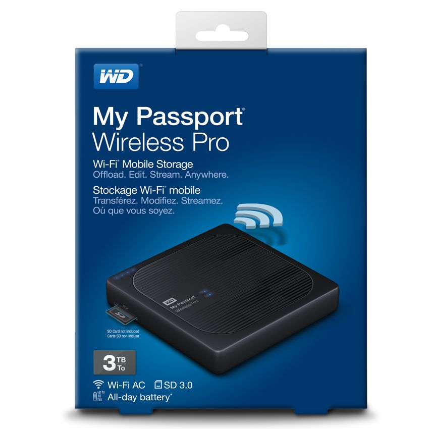 Descripción Western Digital My Passport Wireless Pro. Capacidad de disco duro: 3000 GB, Interfaz del disco duro: USB 2.0, USB 3.0 (3.1 Gen 1) Type micro-B, Tipo de dispositivo: Unidad de disco duro. Tecnología de conectividad: Inalámbrico y alámbrico, Wi-Fi estándares: IEEE 802.11ac, Versión USB: 2.0/3.0 (3.1 Gen 1). Color del producto: Negro. Ancho: 12,6 cm, Profundidad: 12,6 cm, Altura: 2,4 cm