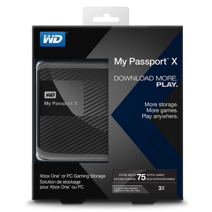 DescripciónAmplíe la experiencia de juego en su Xbox One My Passport X de WD amplía la experiencia de juego en su ordenador o Xbox One. Conecte este disco portátil y potente y añada capacidad de almacenamiento inmediatamente a su sistema. My Passport X es un disco de WD de gran calidad que aumenta el rendimiento para satisfacer los deseos de los jugadores avanzados.Juegue en cualquier lugar Llévese sus juegos favoritos a todas partes. Solo tiene que conectarlo a la videoconsola Xbox One de sus amigos ¡y ya está!*. Se necesita una conexión a Internet e iniciar sesión en su cuenta en línea de Xbox Live.¡Máximo rendimiento! Conectar el disco My Passport X a su Xbox One es como añadir más fuerza y velocidad a su personaje favorito. Le proporciona el espacio que necesita para guardar más juegos y la velocidad de la conexión USB 3.0 para disfrutar de una increíble experiencia de juego. Está diseñado para proporcionar el mejor rendimiento en los juegos de ordenador o Xbox One.Fácil de configurar My Passport X se configura en unos minutos. Conéctelo, siga las instrucciones de la pantalla y ya está preparado para vencer a aliens, vehículos blindados y todo tipo de enemigos.Diseño elegante con una gran capacidad El diseño compacto y elegante de My Passport X le permite llevar sus juegos con estilo a todas partes, y complementa a su Xbox One.La fiabilidad de WD Sus datos son importantes, por eso WD fabrica sus discos con exigentes requisitos de durabilidad, resistencia a los impactos y fiabilidad a largo plazo. Y además, incluyen una garantía limitada de WD para más tranquilidad (las condiciones varían según el país).EspecificacionesCapacidad de disco duro: 3000 GBInterfaz del disco duro: USB 2.0, USB 3.0 (3.1 Gen 1) Type-ATipo de dispositivo: Unidad de disco duroTecnología de conectividad: AlámbricoVersión USB: 2.0/3.0 (3.1 Gen 1)Velocidad de transferencia de datos: 5000 Mbit/sTasa de transferencia de datos USB: 480,5000 Mbit/sSistema operativo Windows soportado: SiSistema operativo MAC soportado: SiUSB con suministro de corriente: SiLector de huella digital: NoColor del producto: NegroIntervalo de temperatura operativa: 5 - 35 °CIntervalo de temperatura de almacenaje: -20 - 65 °CAncho: 8,16 cmProfundidad: 11 cmAltura: 2,1 cmPeso: 230 gCables incluidos: USBManual de usuario: Si