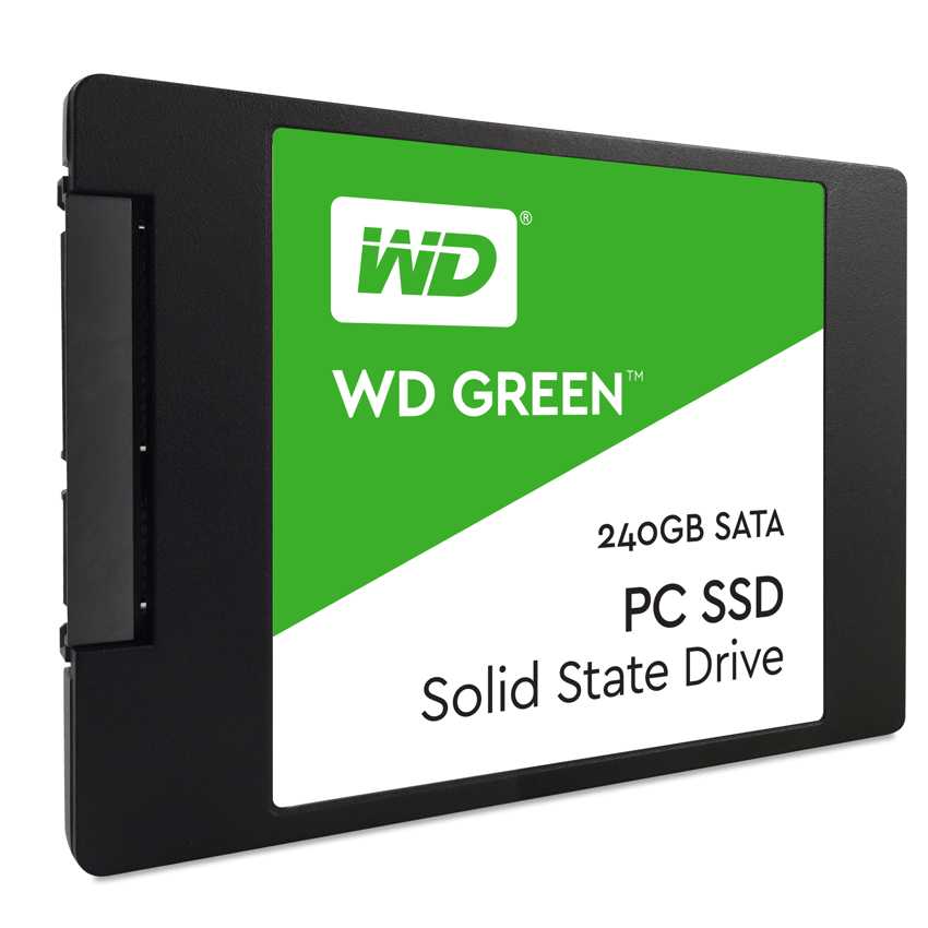 Descripción Western Digital Green. Disco de estado sólido, capacidad: 240 GB, Interfaces de disco de estado sólido: Serial ATA III, Velocidad de lectura: 540 MB/s. Factor de forma de disco SSD: 2.5", Certificación: FCC, UL, TUV, KC, BSMI, VCCI. Ancho: 100,5 mm, Profundidad: 69,8 mm, Altura: 7 mm