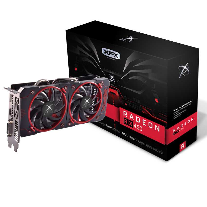 Descripción XFX RX-460P4DFG5. Familia de procesadores de gráficos: AMD, Procesador gráfico: Radeon RX 460, Máxima resolución: 4096 x 2160 Pixeles. Gráficos discretos memoria del adaptador: 4 GB, Tipo de memoria de adaptador gráfico: GDDR5, Ancho de datos: 128 bit. Tipo de interfaz: PCI Express 3.0, Versión HDMI: 2.0b, Versión de DisplayPort: 1.4. Versión DirectX: 12.0. Tipo de enfriamiento: Activo, Color del producto: Negro, Rojo