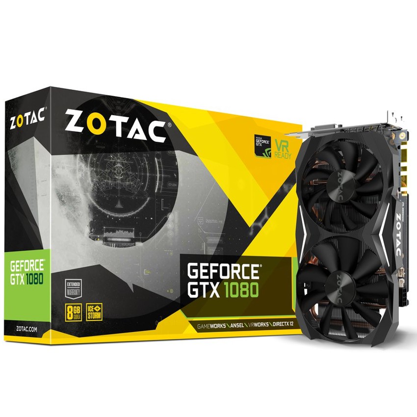 Descripción Zotac ZT-P10800H-10P. Familia de procesadores de gráficos: NVIDIA, Procesador gráfico: GeForce GTX 1080, Frecuencia del procesador: 1620 MHz. Gráficos discretos memoria del adaptador: 8 GB, Tipo de memoria de adaptador gráfico: GDDR5X, Ancho de datos: 256 bit, Velocidad de memoria del reloj: 10000 MHz. Versión DirectX: 12.0, Versión OpenGL: 4.5, Dual Link DVI. Tipo de interfaz: PCI Express 3.0. Tipo de enfriamiento: Activo