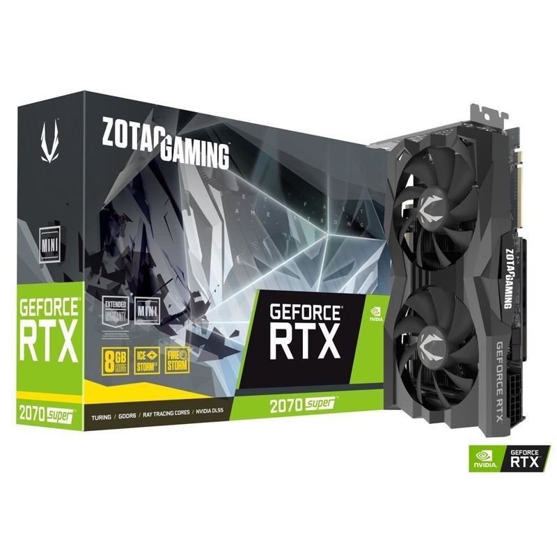 Descripción Zotac GeForce RTX 2070 SUPER MINI 8GB GDDR6. Familia de procesadores de gráficos: NVIDIA, Frecuencia del procesador: 1770 MHz. Capacidad memoria de adaptador gráfico: 8 GB, Tipo de memoria de adaptador gráfico: GDDR6, Ancho de datos: 256 bit. Máxima resolución: 7680 x 4320 Pixeles. Versión DirectX: 12.0, Versión OpenGL: 4.5. Tipo de interfaz: PCI Express 3.0. Tipo de enfriamiento: Activo, Número de ventiladores: 2 Ventilador(es)