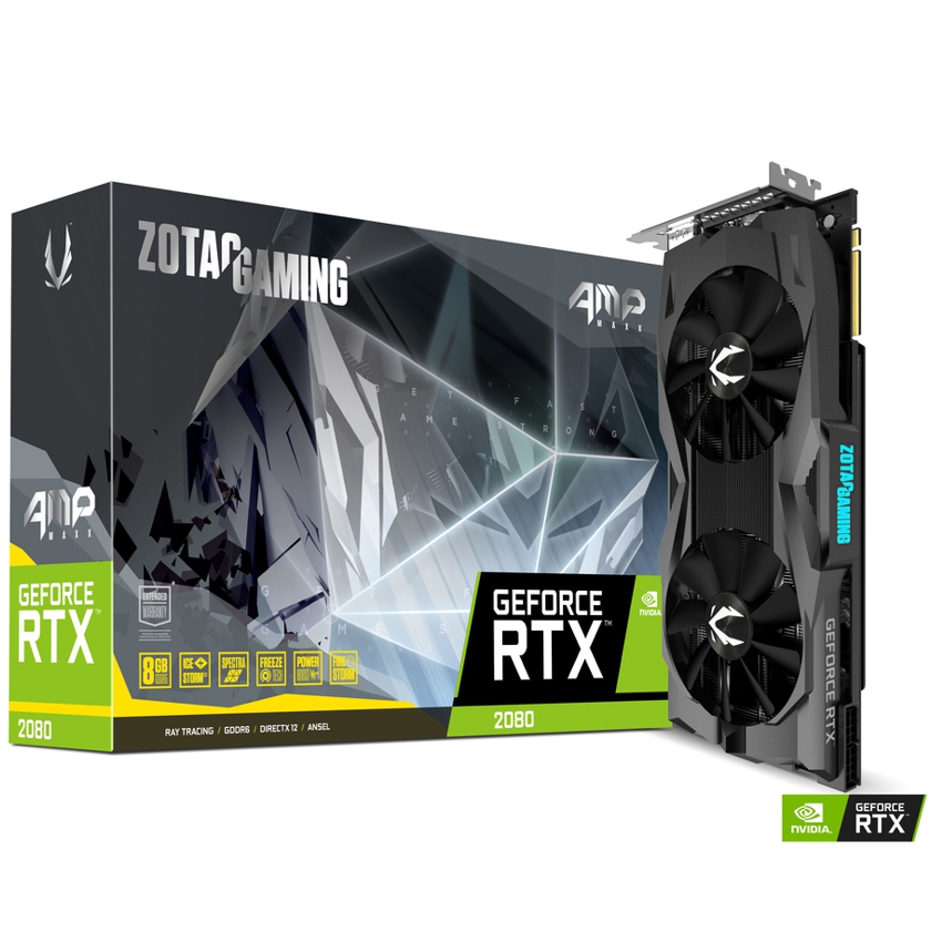 Descripción Zotac ZT-T20800H-10P. Familia de procesadores de gráficos: NVIDIA, Procesador gráfico: GeForce RTX 2080. Capacidad memoria de adaptador gráfico: 8 GB, Tipo de memoria de adaptador gráfico: GDDR6, Ancho de datos: 256 bit. Máxima resolución: 4096 x 2160 Pixeles. Versión DirectX: 12.0, Versión OpenGL: 4.5. Tipo de interfaz: PCI Express 3.0. Tipo de enfriamiento: Activo, Número de ventiladores: 2 Ventilador(es)