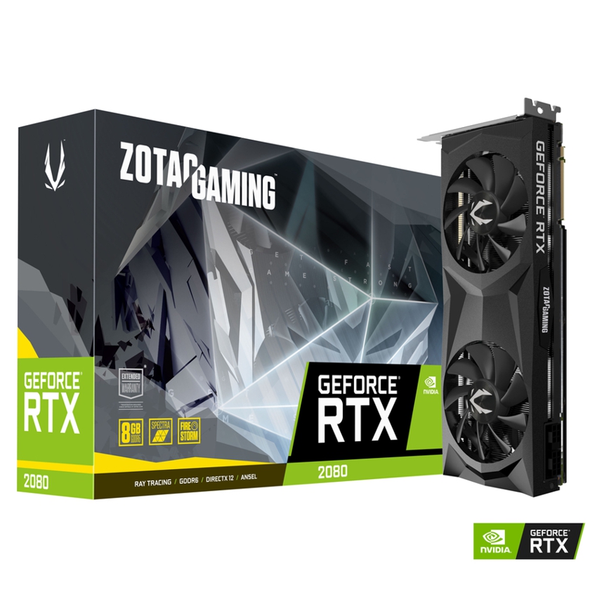 Descripción Zotac ZT-T20800F-10P. Familia de procesadores de gráficos: NVIDIA, Procesador gráfico: GeForce RTX 2080. Capacidad memoria de adaptador gráfico: 8 GB, Tipo de memoria de adaptador gráfico: GDDR6, Ancho de datos: 256 bit, Velocidad de memoria del reloj: 14000 MHz. Máxima resolución: 4096 x 2160 Pixeles. Versión DirectX: 12.0, Versión OpenGL: 4.5. Tipo de interfaz: PCI Express x16 3.0. Tipo de enfriamiento: Activo, Número de ventiladores: 2 Ventilador(es)