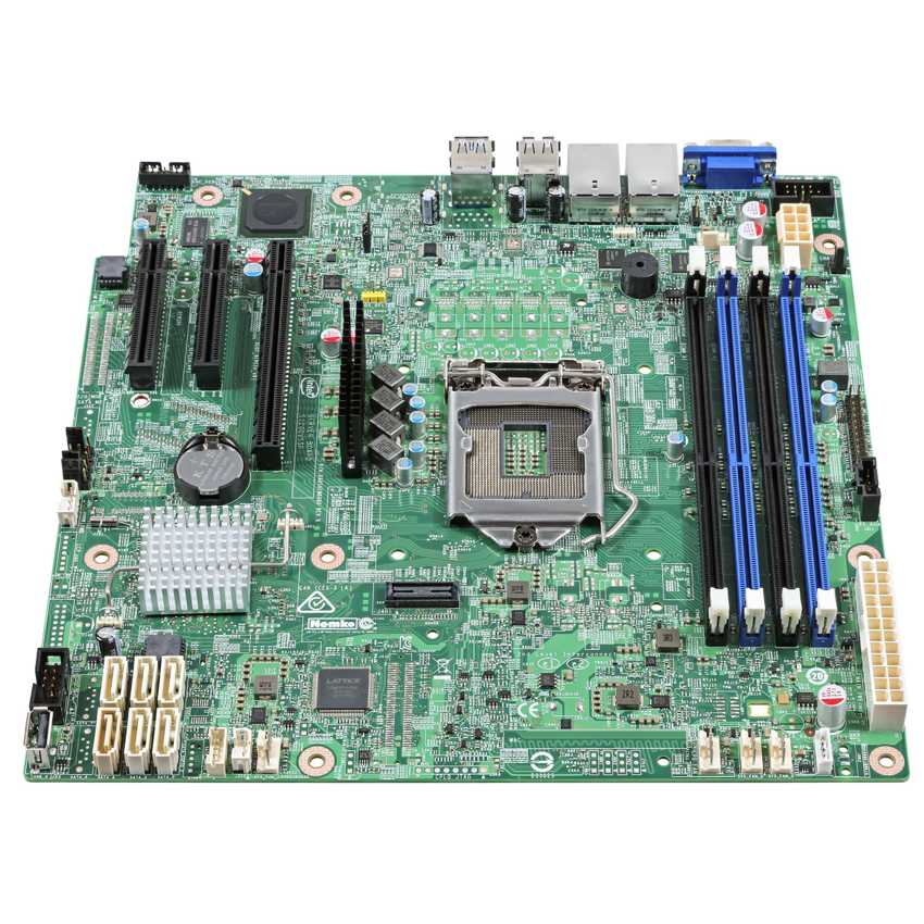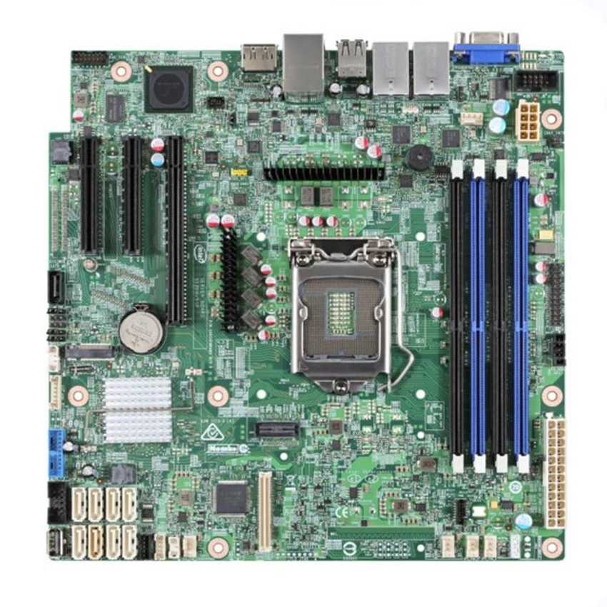 Especificaciones Componente para: Servidor Tarjeta madre, factor de forma: Micro ATX Tipo de chasis: Pedestal Fabricante de procesador: Intel Número de procesadores soportados: 1 Procesador, número de núcleos soportados: 2, 4 Intel® ® Xeon ® serie: E3-1200 Configuración de CPU (máximo): 1 tipos de memoria compatibles: DDR4-SDRAM Número de ranuras DIMM: 4 Memoria interna máxima: 64 GB Capacidad de módulo UDIMM soportada: 4GB, 8GB, 16GB Memoria máxima UDIMM: 64 GB Interfaz del disco duro: SATA Niveles RAID: 0, 1, 5, 10 Número de conectores SATA III: 6 Cantidad de puertos USB 2.0: 2 Cantidad de puertos tipo A USB 3.0 (3.1 Gen 1): 2 Cantidad de puertos VGA (D-Sub): 1 Ethernet LAN (RJ-45) cantidad de puertos: 2 Circuito integrado de tarjeta madre: Intel C232 Extensión de Dirección Física (PAE): Si Sistemas integrados disponibles: No InfiniBand: No Ancho de banda de memoria (max): 68,256 GB/s Opciones integradas disponibles: No Opción de USB (eUSB) SSD integrado: No Intel® I / O Acceleration Technology: Si Intel® Intel®ligent Power Node Manager: Si Tecnología Trusted Execution de Intel®: Si Software de gestión de servidores de Intel®: Si Empresa Intel® Rapid Storage Technology: Si PCI Express x4 Gen (3.x) ranuras: 1 Ranuras PCI Express x8 (Gen 3.x): 2 Versión de entradas de PCI Express: 3.0 Ethernet: Si Tipo de interfaz ethernet: Gigabit Ethernet Wifi: No Adaptador gráfico en tablero: No Factor de forma: uATX Libre de halógenos: No Tecnología de virtualización de Intel® para E / S dirigida (VT-d): Si Número máximo de buses PCI Express: 20 Contenido del paquete: (1) Server Board, (4) SATA Data Cables, (1) I/O Shield, (1) Attention Document; (1) Quick Start Userâ??s Guide; (1) Quick Configuration Label Extensión de dirección física: 40 bit Tipo de producto: 12 Potencia de diseño térmico (TDP): 80 W Cantidad de puertos USB: 4 ECC que admite el procesador: Si Cantidad total de conectores SATA: 6 Familia de producto: Single-socket server board Serie de producto: Intel S1200SP Nombre en clave de producto: Silver Pass Estado: Launched